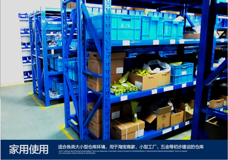 中型貨架適用于人工堆放作業,適用于存放輕、小物品;常應用于電子、服裝、醫藥、食品、電商倉儲、跨境電商配送中心等領域。