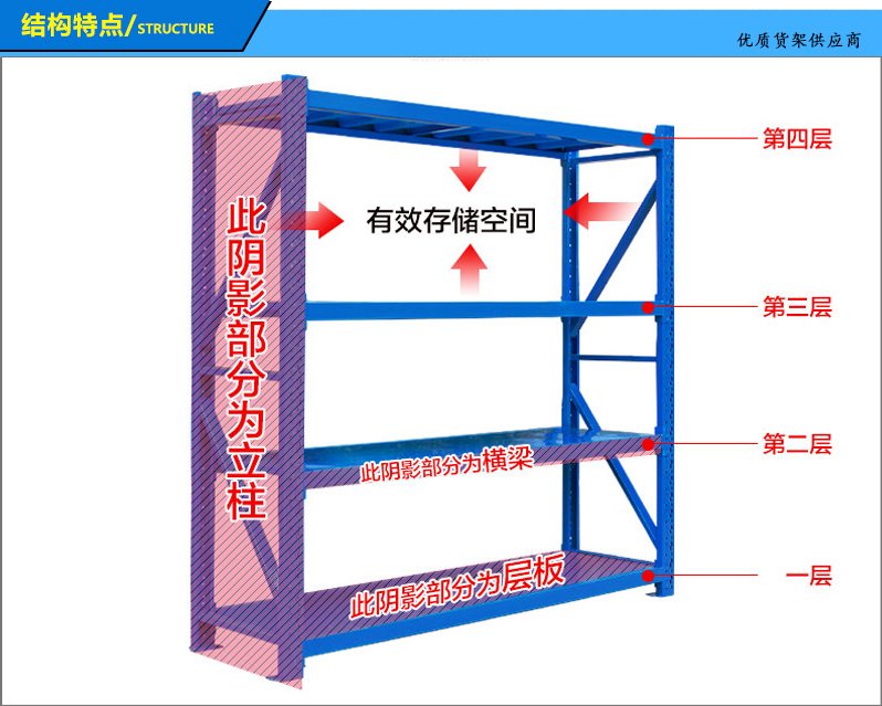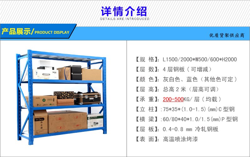 5、常用規格:L2000*D600*H2000mm,4層,每層鋪鋼層板或木層板。